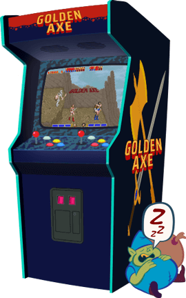 De esta manera tan jovial comienza Golden Axe, un arcade de SEGA que apareció en 1989 en los salones recreativos. Se trata de un juego de lucha del género espada, hacha y brujería en el que pueden participar hasta dos jugadores simultáneos y cuya misión consiste en recorrer tierra hostil derrotando a salvajes, bestias y canallas de todo pelaje, hasta llegar al enfrentamiento final con el malvado Death Adder.